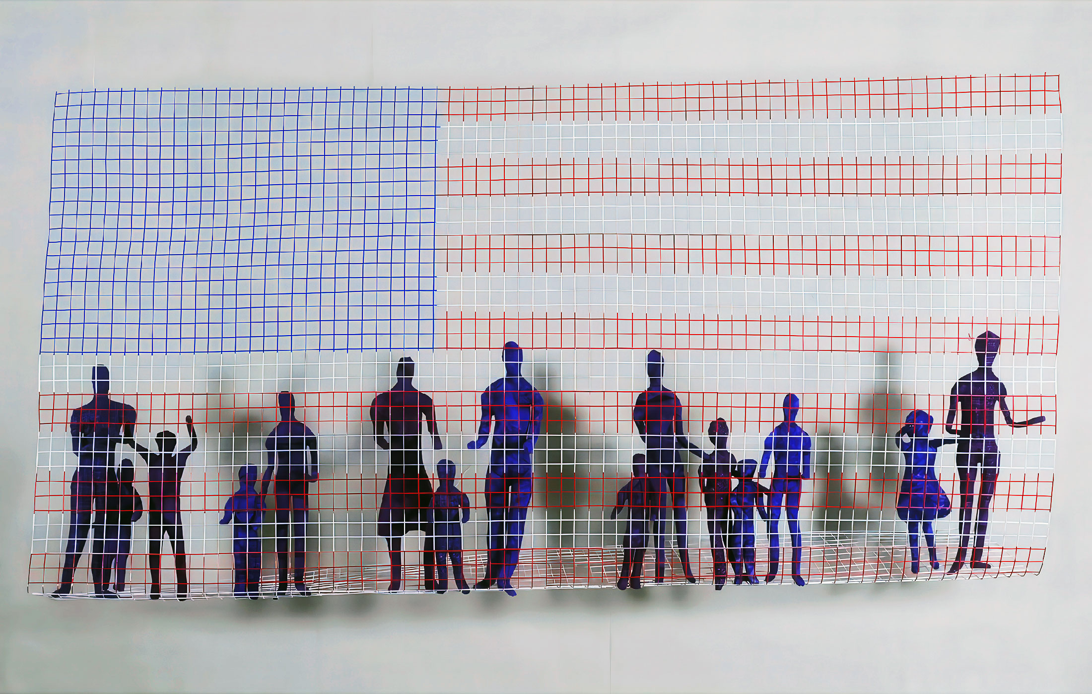 Land of the Free? Heather Stoltz, 2019; 19” x 36” x 6” The United States of America has a proud history of welcoming those in need and providing them with a safe home where they are free to be fully themselves. Unfortunately, in recent years, our fear of the other is overtaking our impulse to help. This piece asks whether we truly are the “land of the free.”