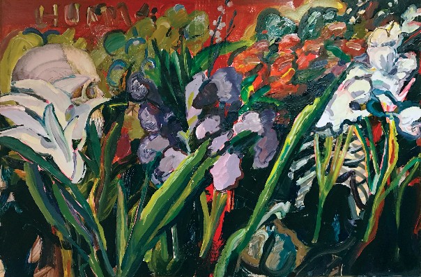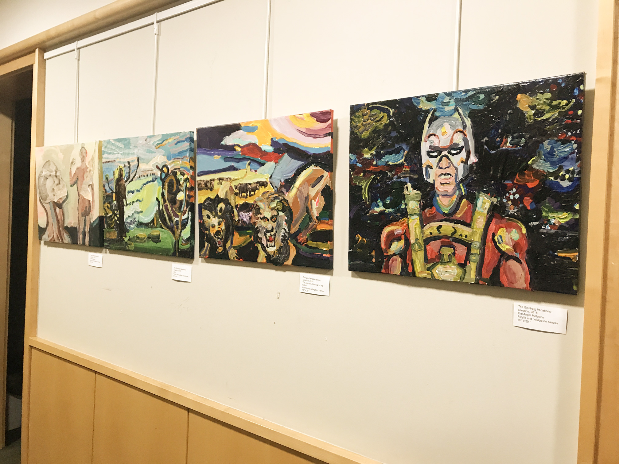 In the Garden of Good & Evil, 2018 Acrylic and collage on canvas 24” x 36”